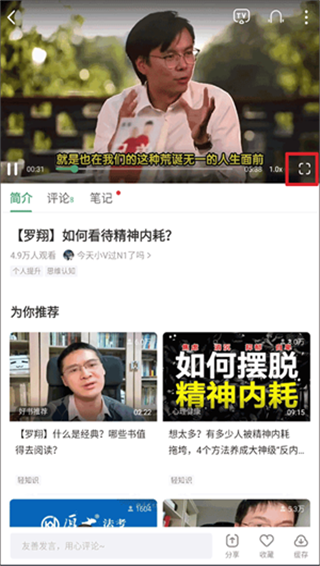 1、首先,打开应用,在视频具体界面中点击视频播放区域;