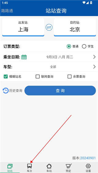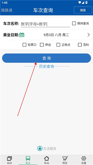 第二步,我们进入界面,输入车次信息,点击查询选项。