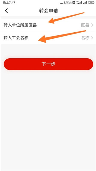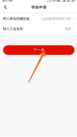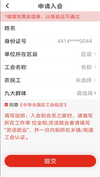 3、填写申请入会信息,在工会名称处输入关键字进行检索,如山东九羊集团有限公司,输入九羊,在下拉菜单选择正确的工会名称