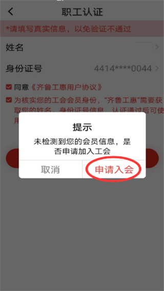 2、注册后提示是否需要立即认证,点击【立即认证】 填写姓名、身份证号,认证之后会提示未检测到您的会员信息,选择【申请入会】