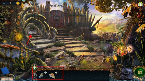 8、接着点击桥,先点开桥旁的失土手稿,然后拿起手稿下面的榔头。