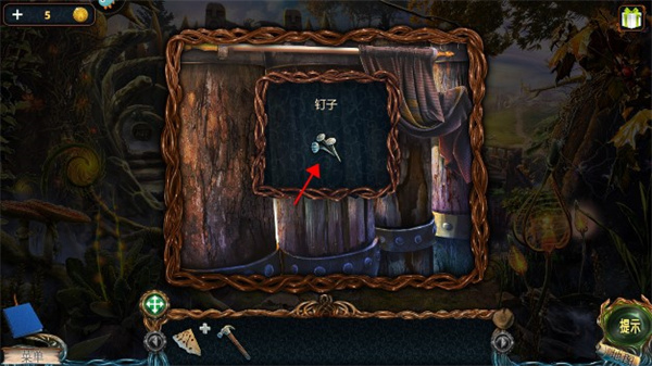 11、得到铁锤后,点开手印那块布,先用铁锤拿到钉子。