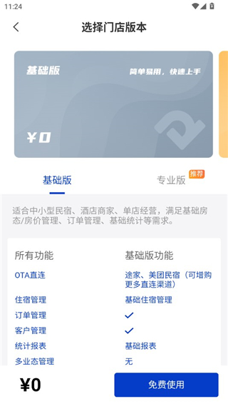 2、选择门店版本,这里为用户带来了基础版与专业版,用户可以根据自己的需要进行选择