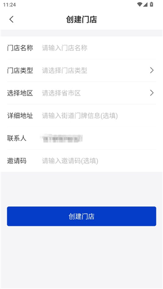 3、创建门店,在这里输入门店的名称,类型,地区等,填写完成之后就可以成功创建了