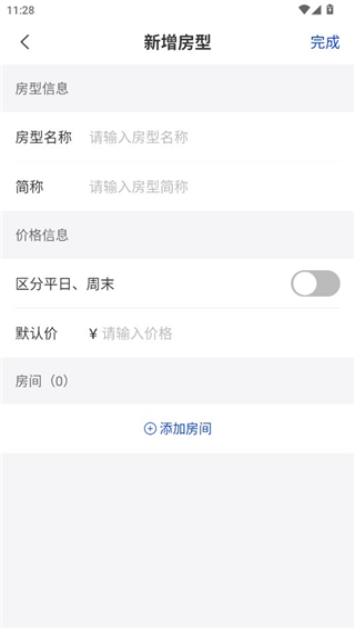 5、在新增房型页面中输入房型的信息和价格,完成之后点击添加房间