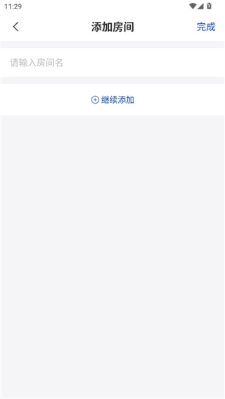 6、输入房间名,然后选择继续添加可以增加新房间,完成之后点击右上角的完成即可