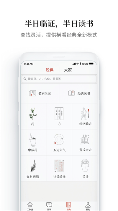 【海量典藏】:以传统中医药学为根本,收录25000个经典药方、13000种经典药材……祛湿治燥、补益安神、理气理血等大小病症皆有对策;