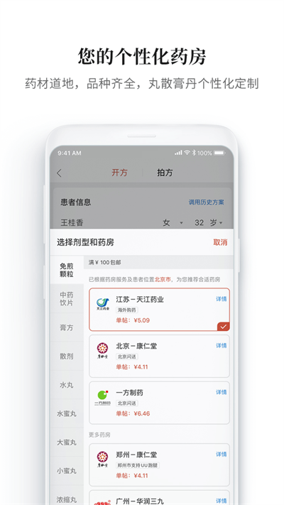 【智能识方】:根据最先进的图像识别技术,智能识别处方,真实还原处方药材,让您面对处方不再迷茫;