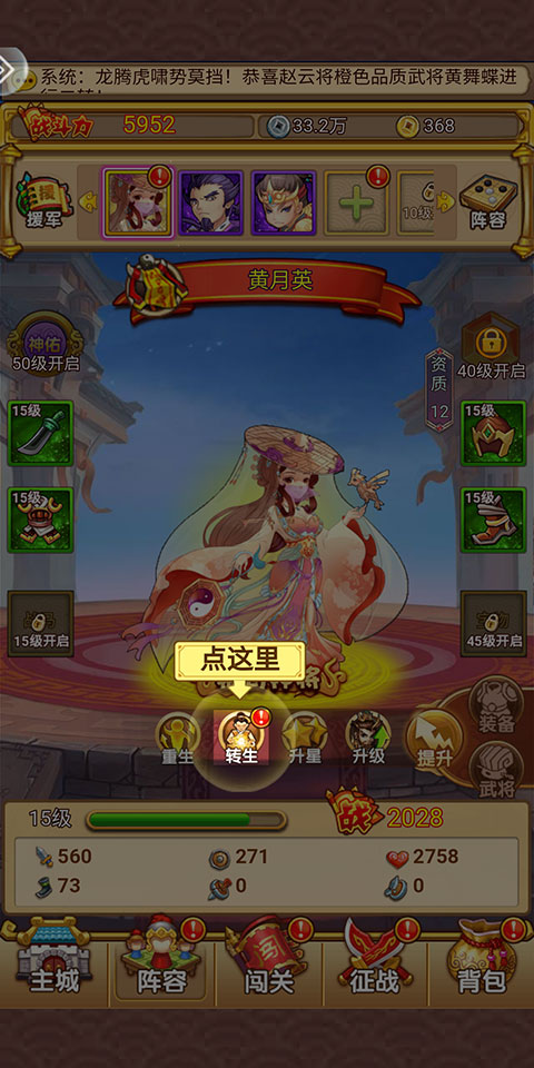 4、转生石不足的话,可以通过群英塔、军团商城、任务、集市等途径获取。
