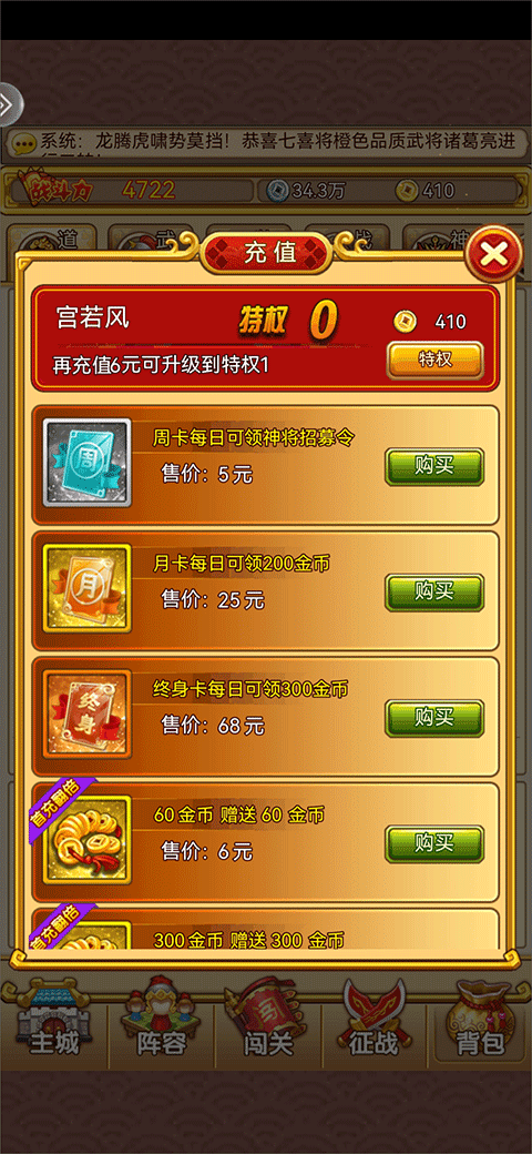 6、充值:可以通过充值来获得金币