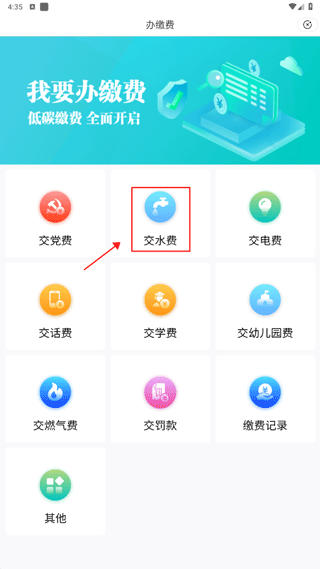 2、进入页面后,点击“交水费”。