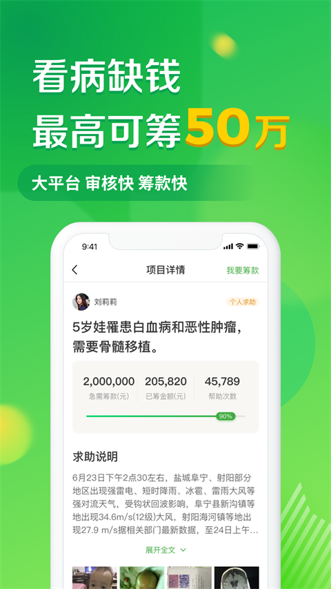 1、坚持零手续费原则,确保每一分善款都能直接用于患者的治疗,减轻患者家庭的经济负担。2、拥有高效的审核机制,确保筹款项目快速通过审核并上线。同时,提现流程简便快捷,善款能够迅速到达患者手中,为患者争取宝贵的治疗时间。
