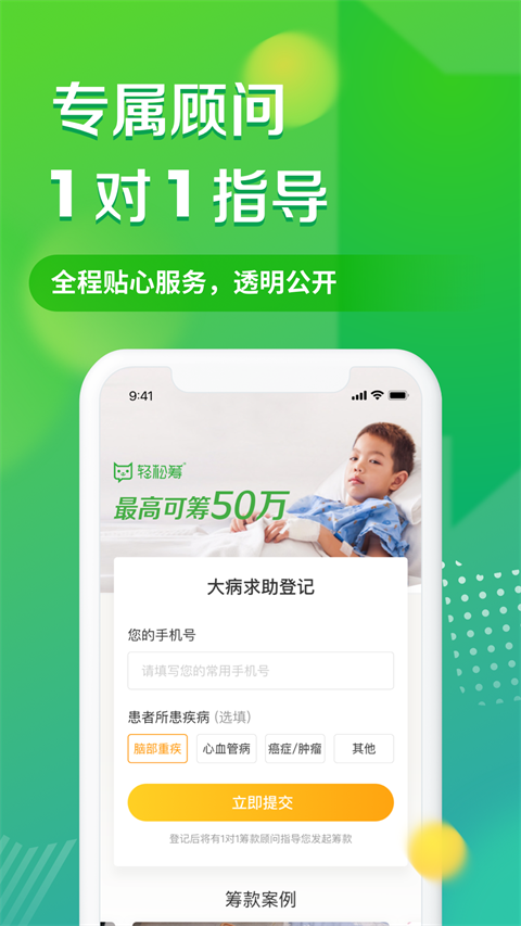 4、提供专业的筹款顾问团队,为患者提供一对一的指导和帮助,包括筹款材料的准备、转发和证实等,确保筹款过程顺利进行。