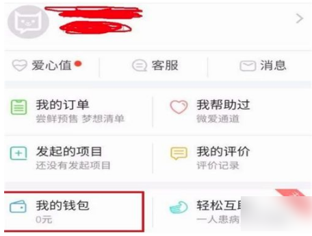 3、亦或者进入个人中心,点击我的钱包,筹款的钱会进入这里,我们点进去提现筹款。