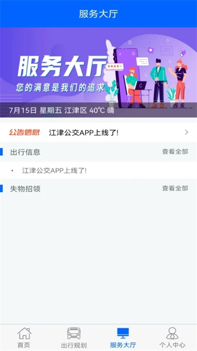 此外江津公交app提供了失物招领服务,在失物招领中,有着所有在公交车丢失物品的信息,如物品名称,物品丢失所在的公交车号等,帮助用户辨别是否是自己丢失的物品。如果你正在江津地区生活又正好有公交车乘坐需求,那么这款软件非常适合你,快来本站下载使用吧。