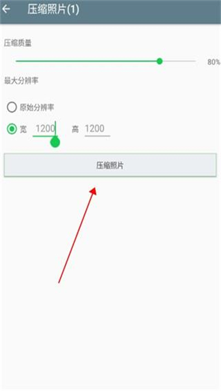 4、选择压缩质量,质量越高压缩后的文件就越小,还可以修改图片分辨率,然后点击压缩照片即可。