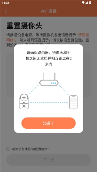 3、连接的时候我们需要确保路由器,摄像头和手机之间无遮挡物并且距离在两米内