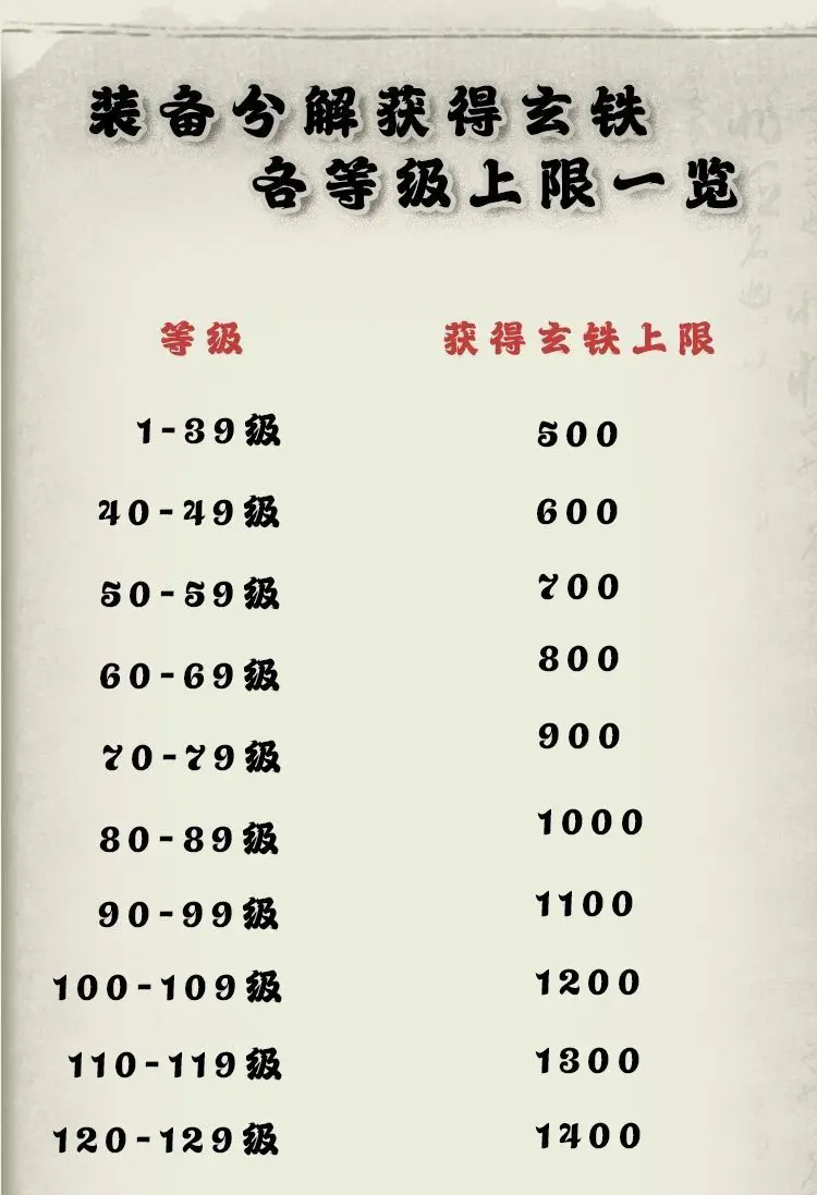上面的表列出了每天通过分解可以获得玄铁的数量上限,超了这个上限,分解什么都不给玄铁了哦,所以如果你有多的装备,不要一次过分解完,玄铁很珍贵,每天卡着上限就好啦(珍惜珍惜,不要图手快)