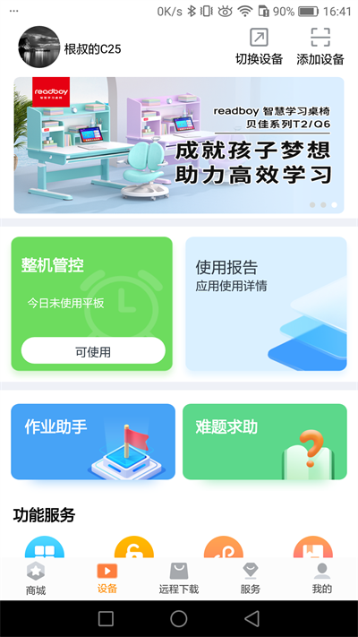 1、管控学习设备的使用时间2、随时查看小孩学习记录