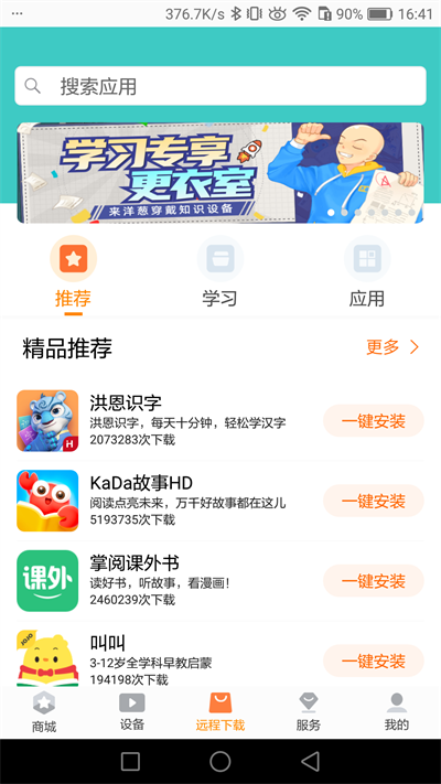 1、强大的家长管理功能,远程监督孩子的学习;2、下载控制可以控制书书朗商城的下载权限,限制应用下载的类型;