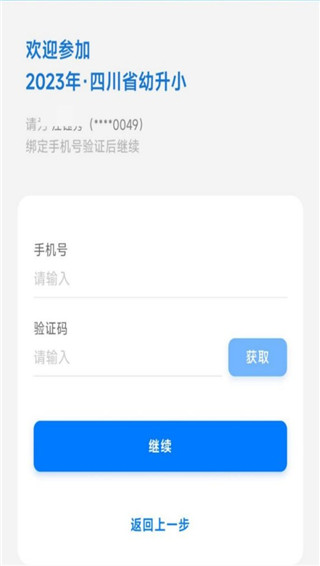 3、第二步:输入真实有效且长期使用的手机号,获取验证码,绑定手机号。如图所示。(注意:只有第一次登录需要绑定手机号)