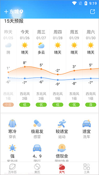1、天气动态、PM2.5污染提示、穿衣建议,更有45天天气预报2、生物节律、气节常识、节气养生信息,你在乎的,我们都有