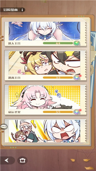 不过最让我感觉有意思的,还是这游戏的剧情体验,在游戏里叫做旅途,在关卡界面,下方小队成员的待机动作,跟剧情关卡的章节有很大联系,每一章都是对应的动作,看着就比较有代入感,另外就是剧情的展示方式,现在一般的二游,基本都是单纯对话的形式,多多少少还是有些枯燥的,高成本的CG动画不是说没有,但也比较的少。
