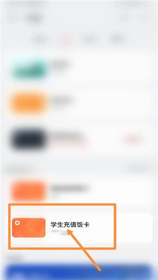 在添加卡片页面中,点击页面上的学生充值饭卡