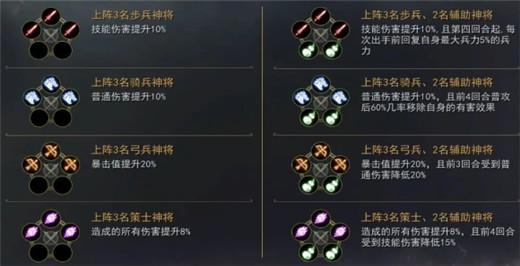 在游戏中,不同兵种搭配起来的效果也不相同,主公可以根据自身的武将池搭配阵容,同时游戏中,还有多种阵容流派,每个阵容的侧重点不懂,例如:暴击流、普攻流、连击流等,主公可以不断创新,开发出更多阵容流派,在征战中先人一步