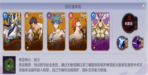 如果我们有赵云和天使缇娜,但是缺少另外三个角色中的一两个,其实我们知道赵云是伤害核心,那其实三个辅助角色是可以随意替换的,比如替换一个为【夏铃】,她可以降低敌人的攻击,对于提升赵云的生存能力也效果卓著!