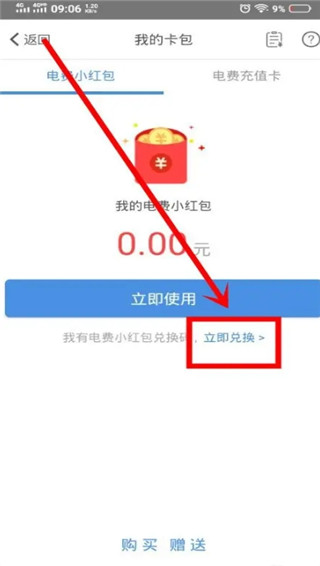 进入到电费小红包这个页面中之后,在该页面中我们找到立即兑换按钮,点击进入。