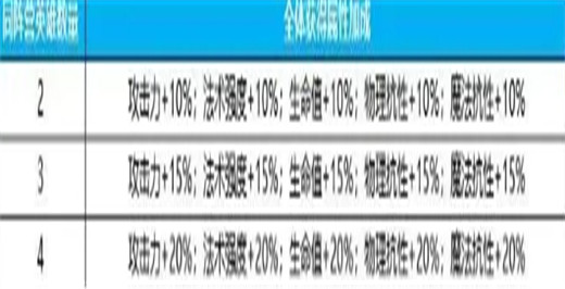 注意!同阵营的属性加成效果属于锦上添花,不建议强行凑加成,阵容搭配的合理性更加重要。