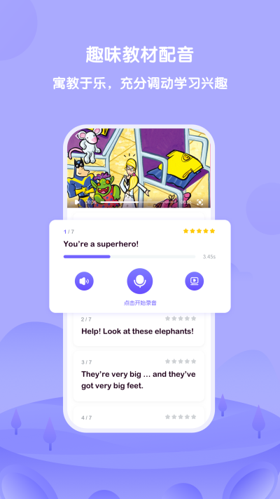 同时外研u学app官方版采用科学的训练方法,通过听说读写全方位的练习,帮助学生全面提升英语能力,其内置的练习题库和模拟考试系统,让学生能够在实践中巩固所学知识,提高应试能力,此外这款软件中还提供了智能评测和反馈机制,让学生及时了解自己的学习进度和存在的问题,实现英语学习的全面发展。