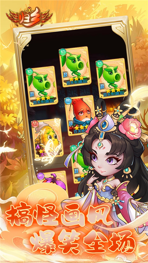 归乡手游是一款放置卡牌手游,游戏以三国故事为背景,将武将们绘制成了一个个可爱独特的食材,想象一下你将和火爆的辣椒吕布、可爱的香蕉孙策、拿着扇子的鱿鱼诸葛亮等数十位独特的食材武将们一起战斗是多么的炫酷。游戏采用了先进的uniyt3D引擎打造,精美细腻的画质、炫酷的技能特效,惟妙惟肖的场景建筑,为玩家带来极致的视觉盛宴。
