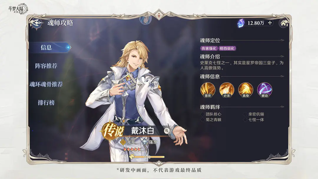 戴沐白必杀可为自身提供40%的暴击提高效果,拥有比其他角色更强的输出能力。在武魂真身下队伍行动有高额概率触发追加攻击,拥有更高的输出频率。