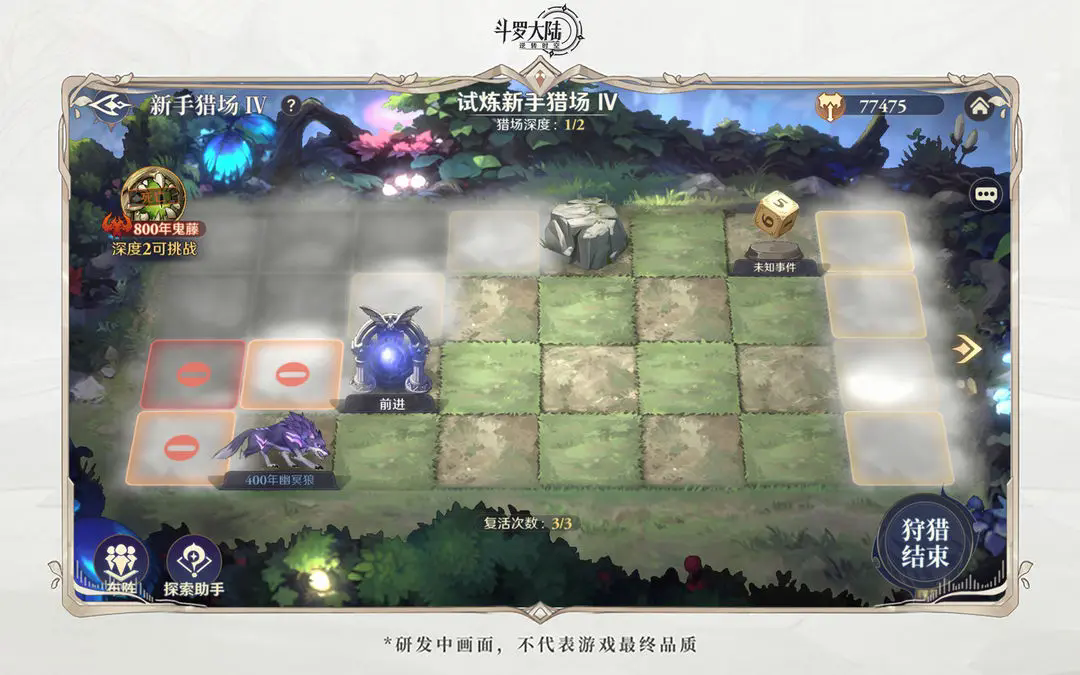 每个猎场是以“迷雾探索”的方式进行,我们点开迷雾有机会获取魂环强化材料、钥匙以及各类魂兽,在猎场内击杀魂兽,即可获得对应魂环。在获取钥匙后可进入下一层,猎场中的BOSS才是我们的主要目标。击败BOSS层所有怪物,就可获取对应年限魂环及魂环强化材料。