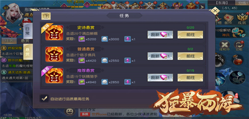 5、勾选界面下方“自动进行任务”的选项,则角色自动进行当前三个任务中等级最高的悬赏任务;