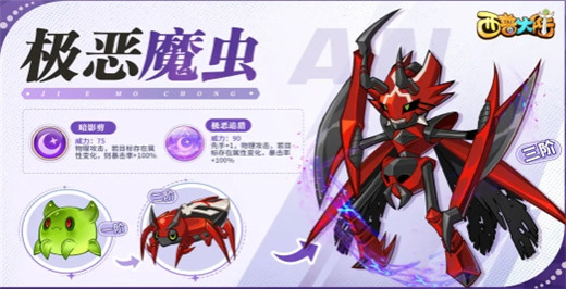 因为暗系精灵的隐蔽性,只有一小部分人能知晓该系的相关信息。小时候主要依靠能使对手降低防备的信息素,粘附在其他精灵身上出行。拥有短暂飞行能力后,它迁居到孤寂的山林独立生存。它的背部拥有恶魔纹路,情绪的变化会影响到纹路并产生变化。成熟体的极恶魔虫会露出如恶魔般的恐怖微笑,挥动翅膀发出的刺耳虫鸣声,能使听众产生恐惧情绪。