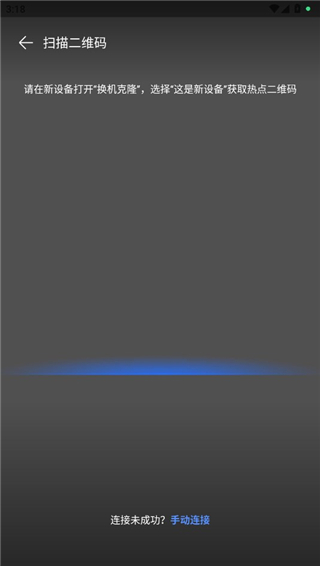 4、根据持有的新设备在软件选定后产生的二维码,结合旧设备打开的扫一扫可进行连接