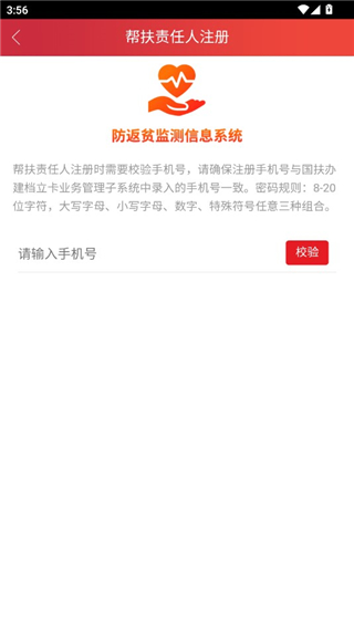 防返贫监测app官方版是一款专门为扶贫工作打造的总和服务平台,也被叫做建档立卡,能够实时采贫困户,贫困村,贫困县等信息,软件针对于两方面人员,“帮扶责任人”和“脱贫户、易返贫致贫户”针对于不同的用户,登录时需要填写相关的材料才可以使用,如帮扶责任,因为在帮扶组织中已有记录,所以可以直接使用手机号码登录,脱贫户、易返贫致贫户则需要填写相关的材料信息,同时,软件对于两者推送的信息内容也是不同的,用户需要根据情况来选择身份并完成对应的任务。