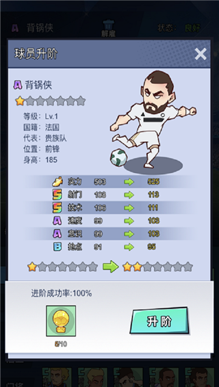 每个A级和S级球员都有自己属性技能等级,玩家可选择任意球员进行提升,从而获得更加强大能力。