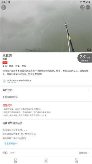 3、点击进钓场后,可以查看钓场的情况和网友评价