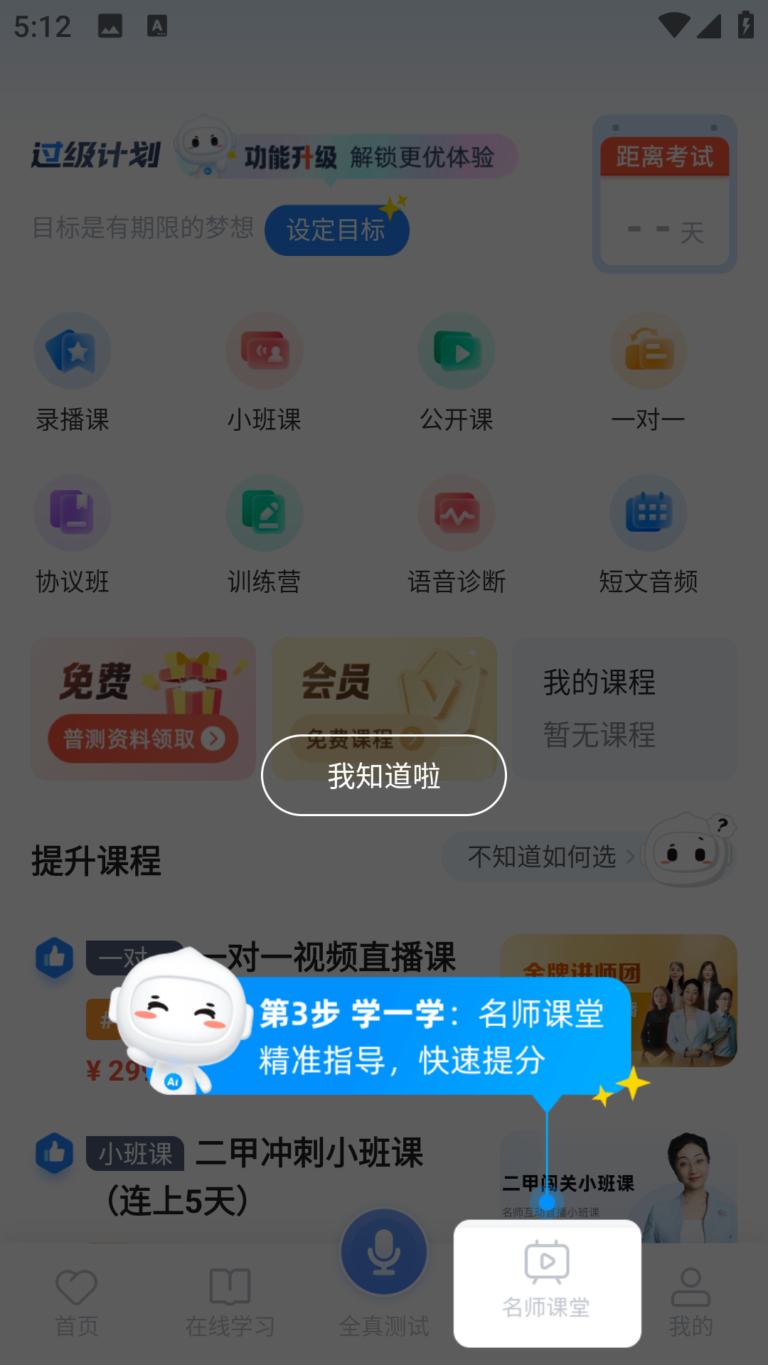 3、我的课堂中,有着丰富的课程,直播课、录播课、一对一讲解应有尽有。