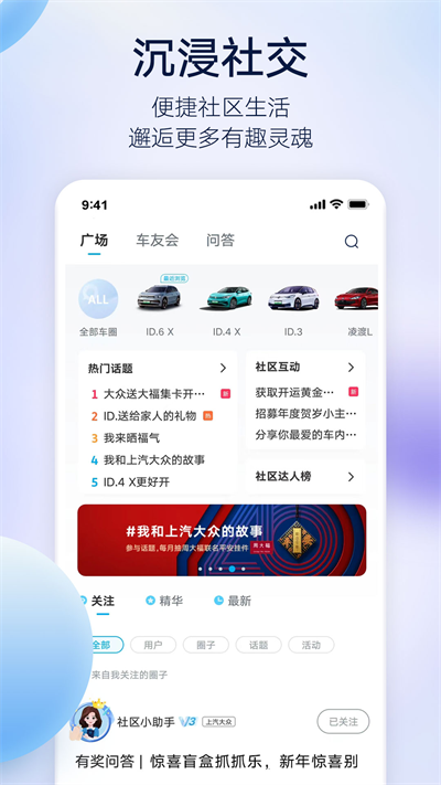 上汽大众app官方版的首页中有着海量的优质文章资讯,如用车养车、车主生活、app攻略等,用户可以随时随地查看资讯,让自己对车辆有个更深入的了解。此外软件的商城中还有大量的车辆品质商品,如露营帐篷、儿童座椅、行车记录仪等,用户可享更加实惠的价格都买到更加高品质的商品服务。如果你也是大众品牌汽车的车主话,那就快来本站下载软件使用吧。