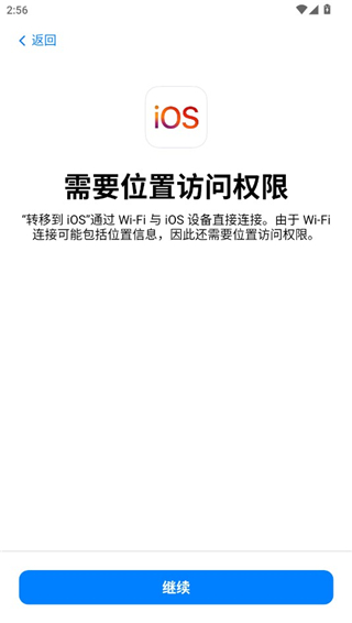 4、位置访问权限,软件将会通过WiFi与iOS设备进行连接,点击下方的继续进行下一步