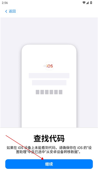 5、查找代码,我们将会在iOS设备上看到相关代码,将其填入即可开始数据传输