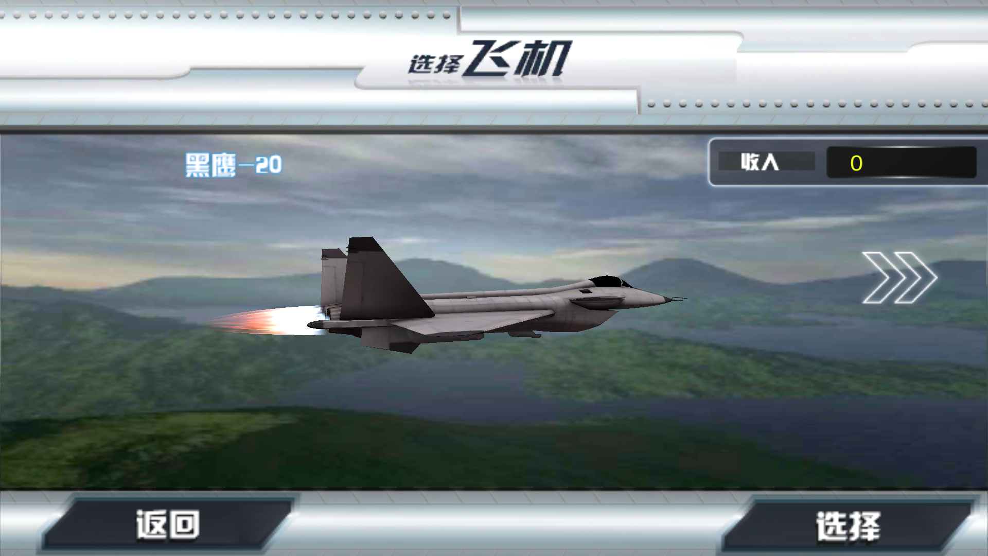 2、进入到选择战机页面,刚开始只能选择黑鹰-20。