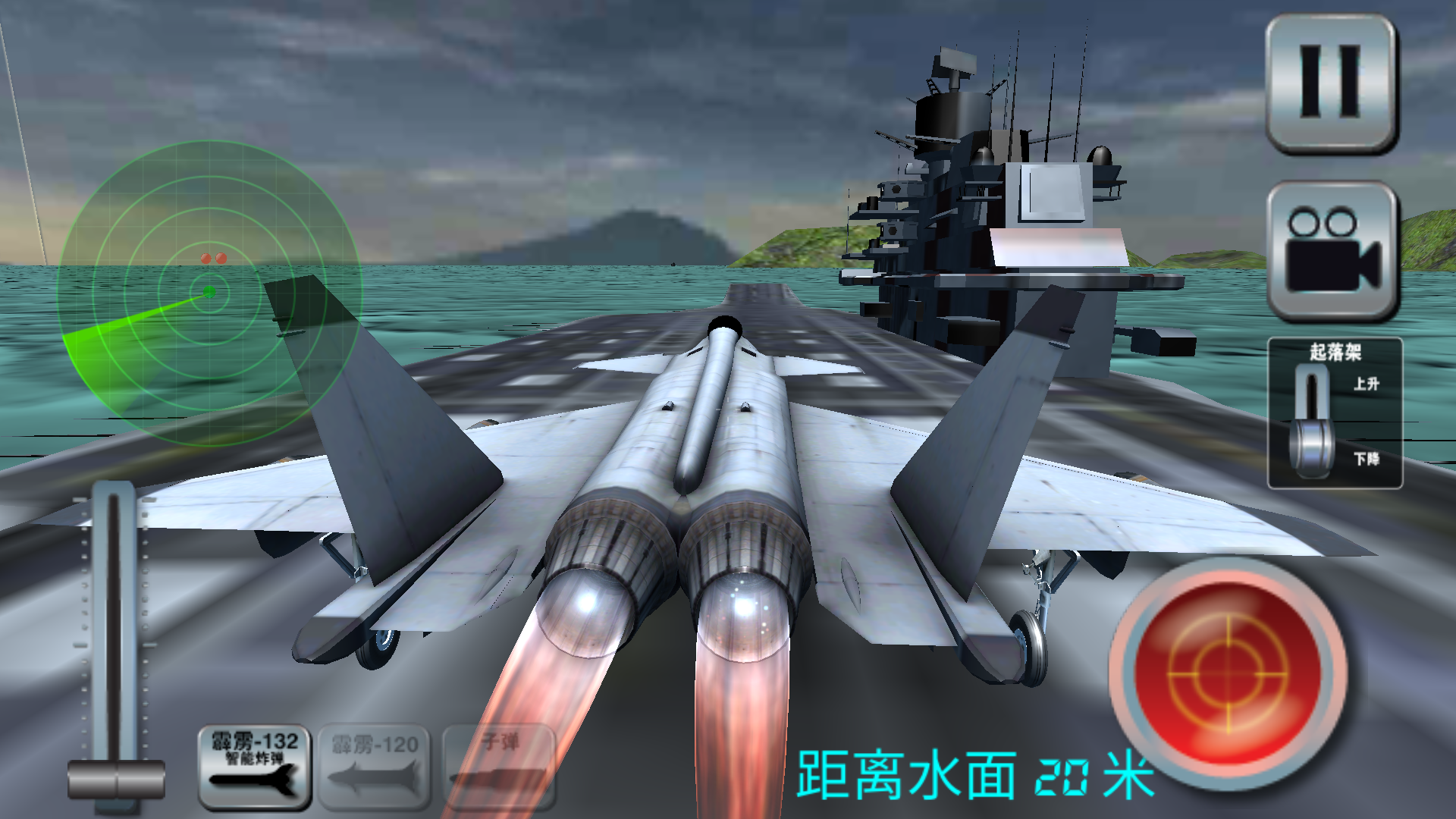 7、起飞后别忘记了上升起落架,找到目标后点击右下角开火摧毁目标。