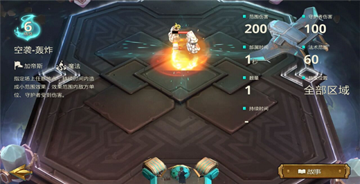 描述:指定场上任意地点,造成大范围效果,效果范围内造成敌我双方单位、守护者伤害。