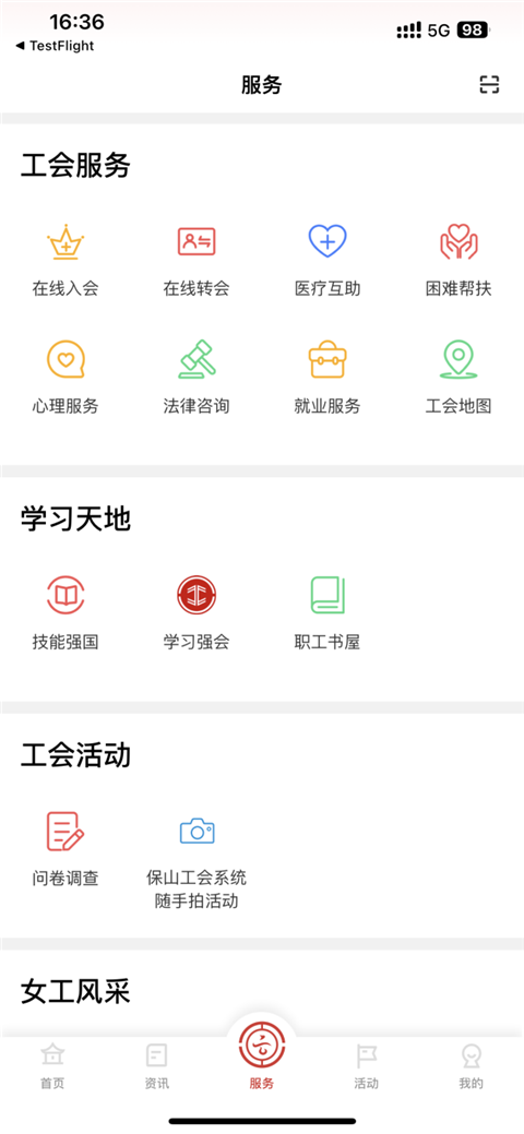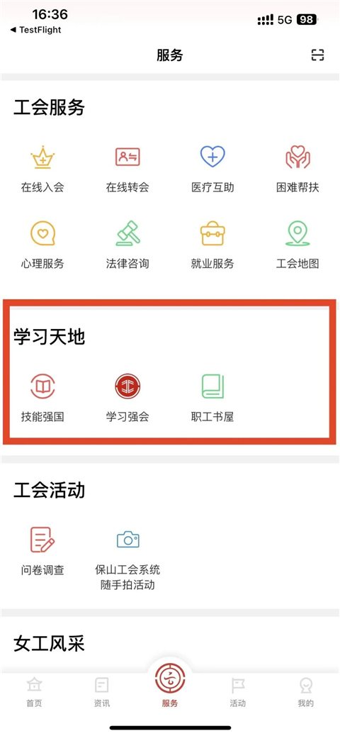1、服务功能有四个主要部分:工会服务、学习区、工会活动、女工风采。